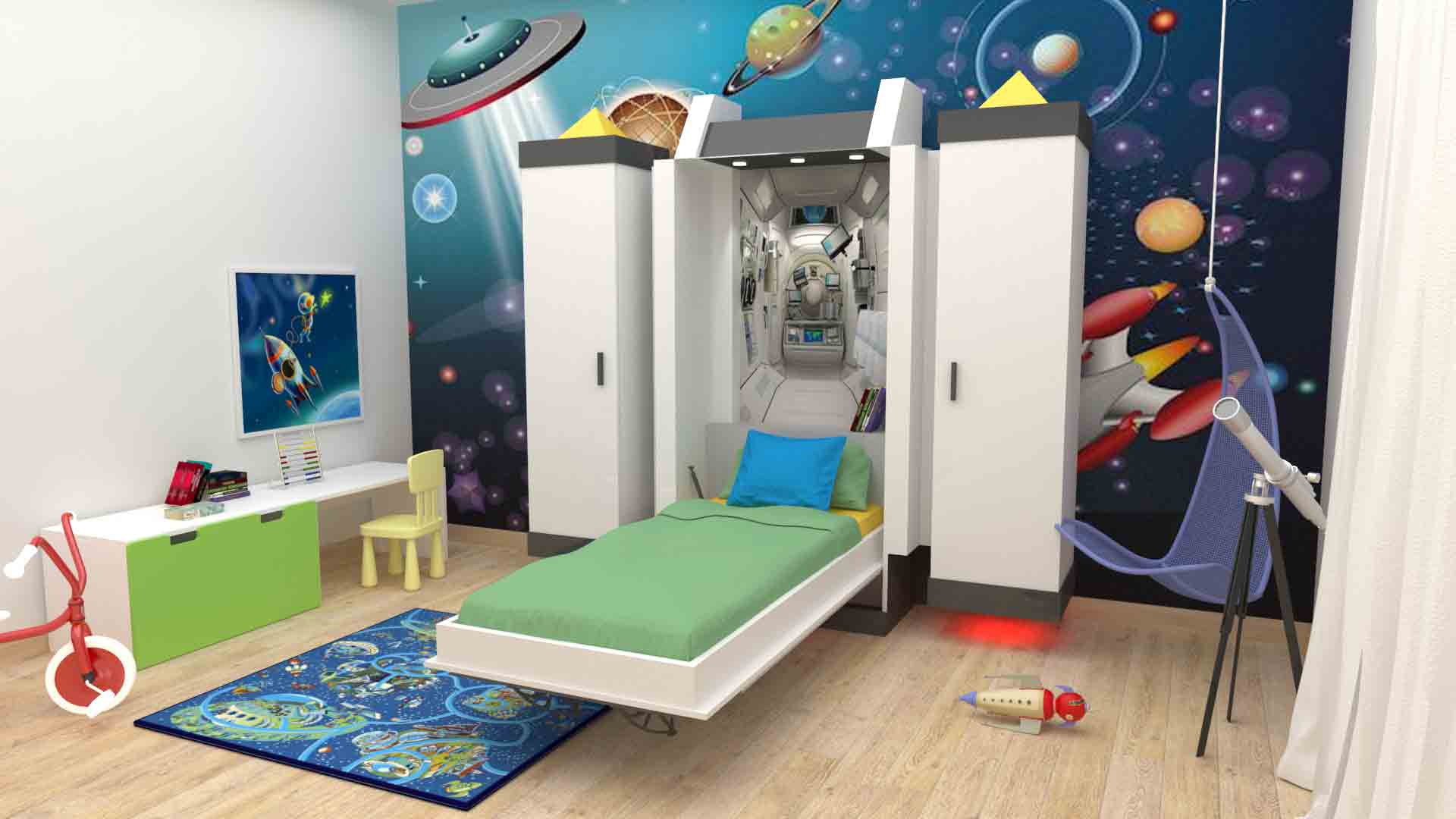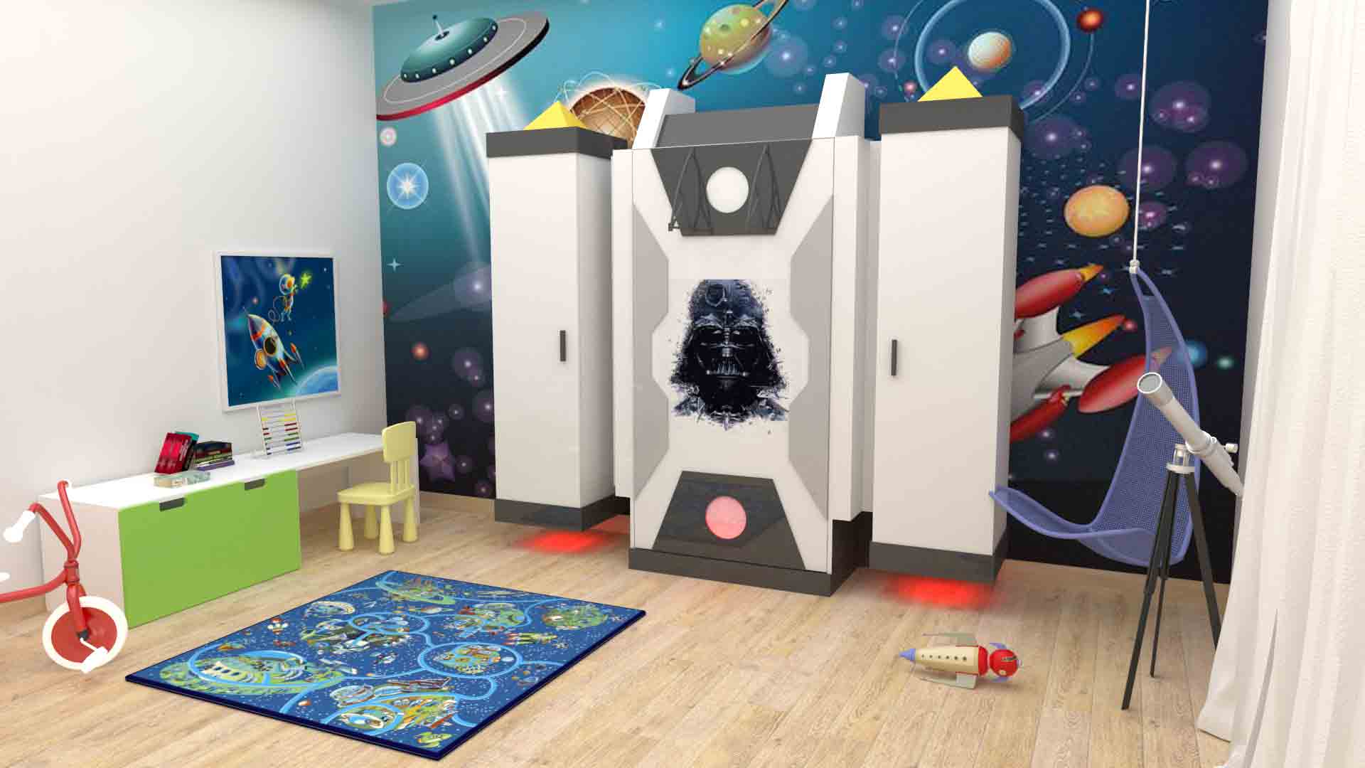 Other elements in the room can be customized to work (shelves, tables, chests of drawers, cupboards and closets).