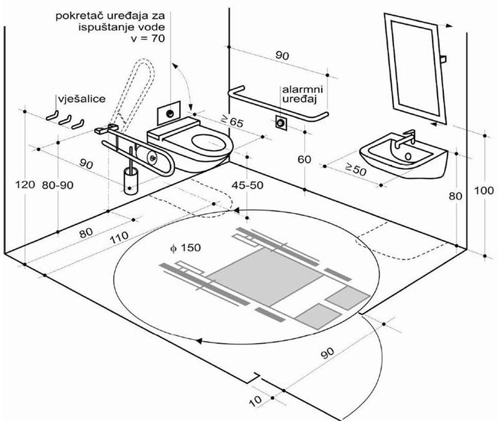Razna pomagala za lakše kretanje, sedenje i pomeranje invalidnih i starih lica u sanitarnim i drugim privatnim i javnim prostorima.